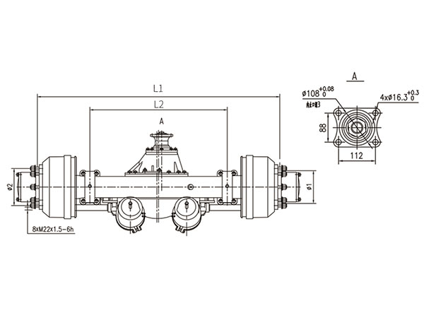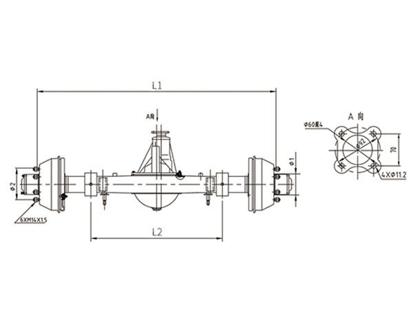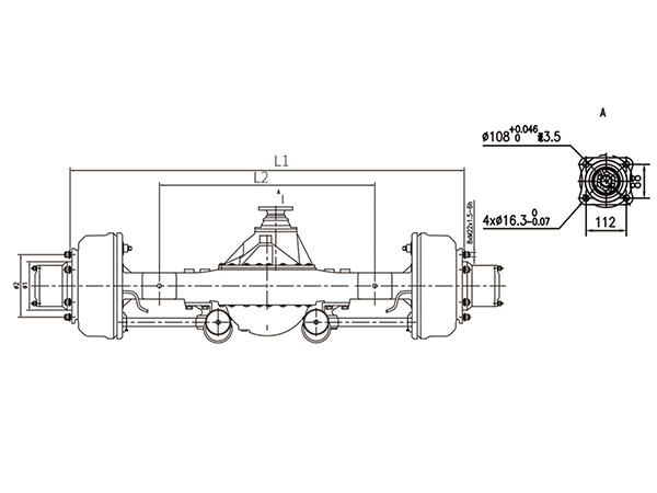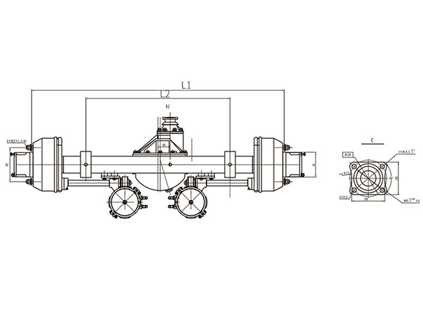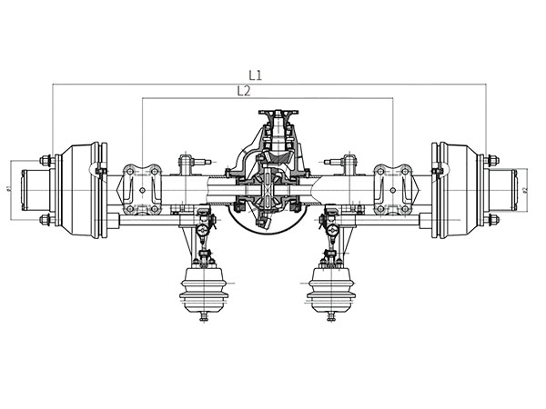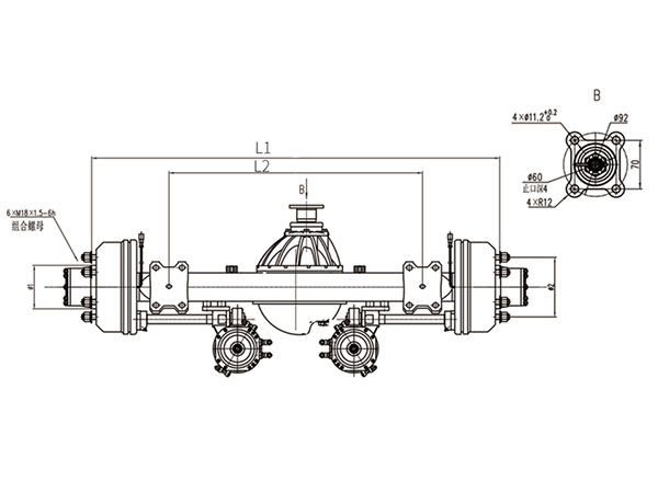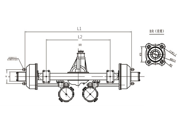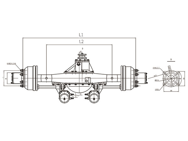 | الرقم | الموديل | الطول الكلي للمحور الخلفي L1 | مسافة مركز النابض الصفائحي (النابض الورقي) L2 | الحمولة | عزم الإخراج | الفرامل | ذراع التعديل | دائرة إسناد مرجعية المسمار اللولبي للإطار |