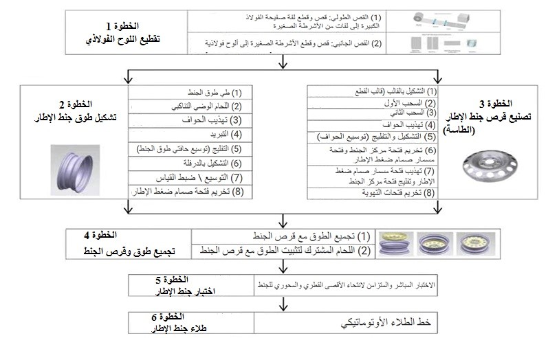 إننا نستطيع تصميم التخطيط الأنسب لعملية الإنتاج وتكنولوجيا التشغيل الميكانيكي وفقاً لمتطلبات المستخدم. يتم عرض العمليات الإنتاجية القياسية لخطوط إنتاج جنط إطارات سيارات الركاب، الشاحنات، والمعدات الزراعية في الجدول التالي كمرجع.