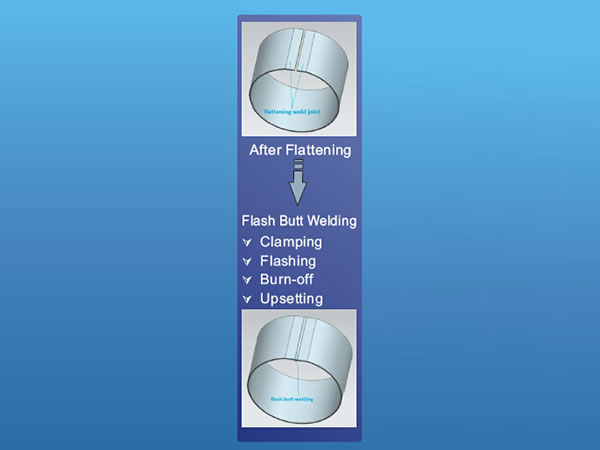 إنه من الضروري إستخدام آلة التسطيح من أجل تسطيح وصلة أربطة جنط العجلة الملفوفة التي تكون بسمك أكثر من 4mm قبل عملية اللحام المقاومة الكهربائية.