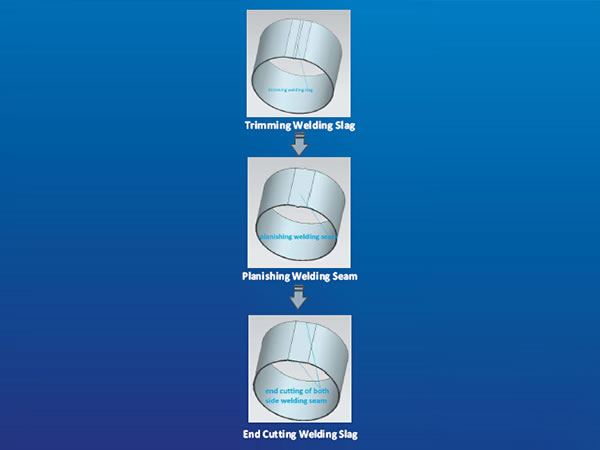 سوف يتم إنتاج نفايا اللحام على كل من السطح الداخلي والسطح الخارجي لوصلة اللحام بعد عملية اللحام. وحدة الآلة خاصة التي تتكون من آلة التشذيب، آلة الصقل وآلة القطع الطرفي يمكن أن يتم إستخدامها من أجل إزالة النفايا ومن أجل جعل سطح وصلة اللحام مسطحة وناعمة.
