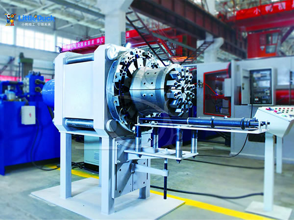 آلة التمديد الأفقية يتم إستخدامها من أجل عمليات تمديد الحجم بعد عملية تشكيل جنوط عجلة السيارة. التمديد والتحجيم الدقيق تستخدم أدوات خاصة مما يجعل الجنوط المُشكلة أن تلبي متطلبات التصميم للقطر.