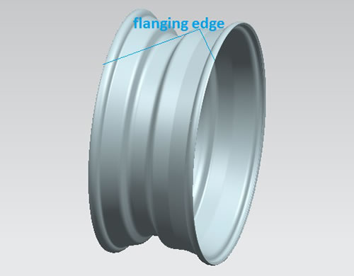#3. تفليج حواف الجنط هي عملية درفلة على البارد بشكل متقن لجعل حافتي طوق الجنط ملساء وغير خشنة. وهي تبقى خيار للمستخدم وفقاً لمتطلباته لدقة التصنيع الآلي.