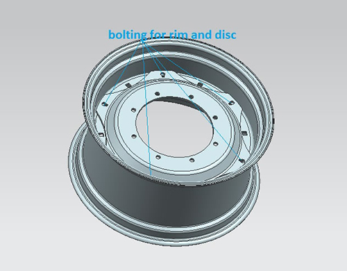 #4. عملية تصنيع جنط الإطار باستخدام خطوط إنتاج جنط إطارات سيارات الركاب والشاحنات في العادة يوصل مع قرص الجنط (الطاسة) من خلال عمليات اللحام. أما في حالة خطوط إنتاج جنط إطارات المعدات الزراعية بشكل عام، يربط طوق وقرص الجنط مع بعضها بواسطة مسامير التثبيت.