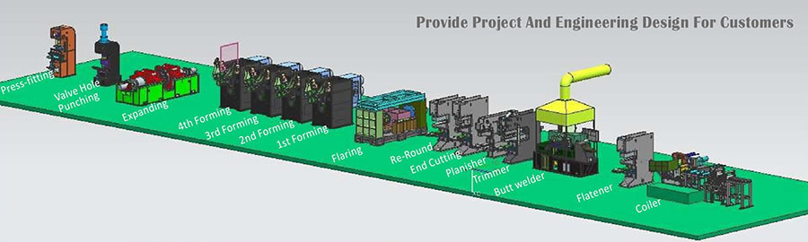 إن منتجنا خط تصنيع جنط العجلة الفولاذي يتكون من مجموعة واسعة من آلات تصنيع عجلات السيارة بما في ذلك آلة اللف، آلة اللحام المقاومة الكهربائية AC، جهاز التشذيب، جهاز الصقل، وحدة القطع الطرفي، مكبس إعادة الدوران، آلة طوي أفقية، وآلة تشكيل الجنط، آلة تمديد عمودية، وآلة تخريم ثقب الصمام، آلة التخريم، آلة اللحام المدمجة، نظام هيدروليكي، نظام التحكم الكهربائي والأدوات الضرورية.